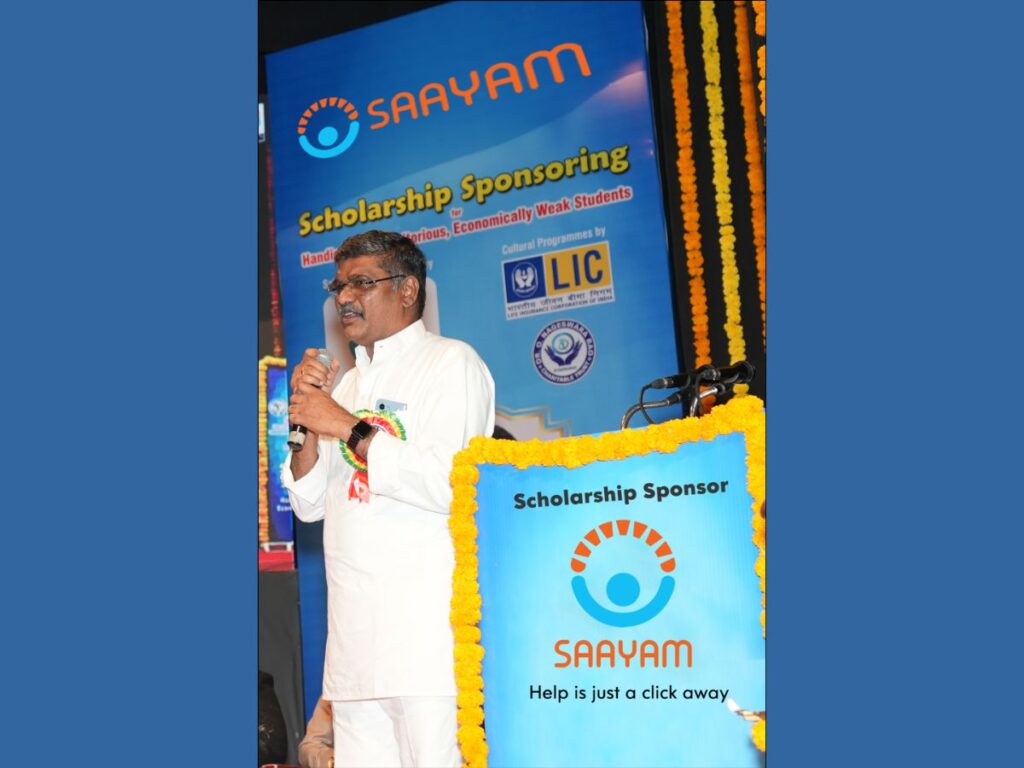 On the evening of March 13th, Wednesday, at a magnificent gathering at Ravindra Bharathi, theSaayam Charitable Association sponsored scholarships for these students who are disabled and financially challenged.